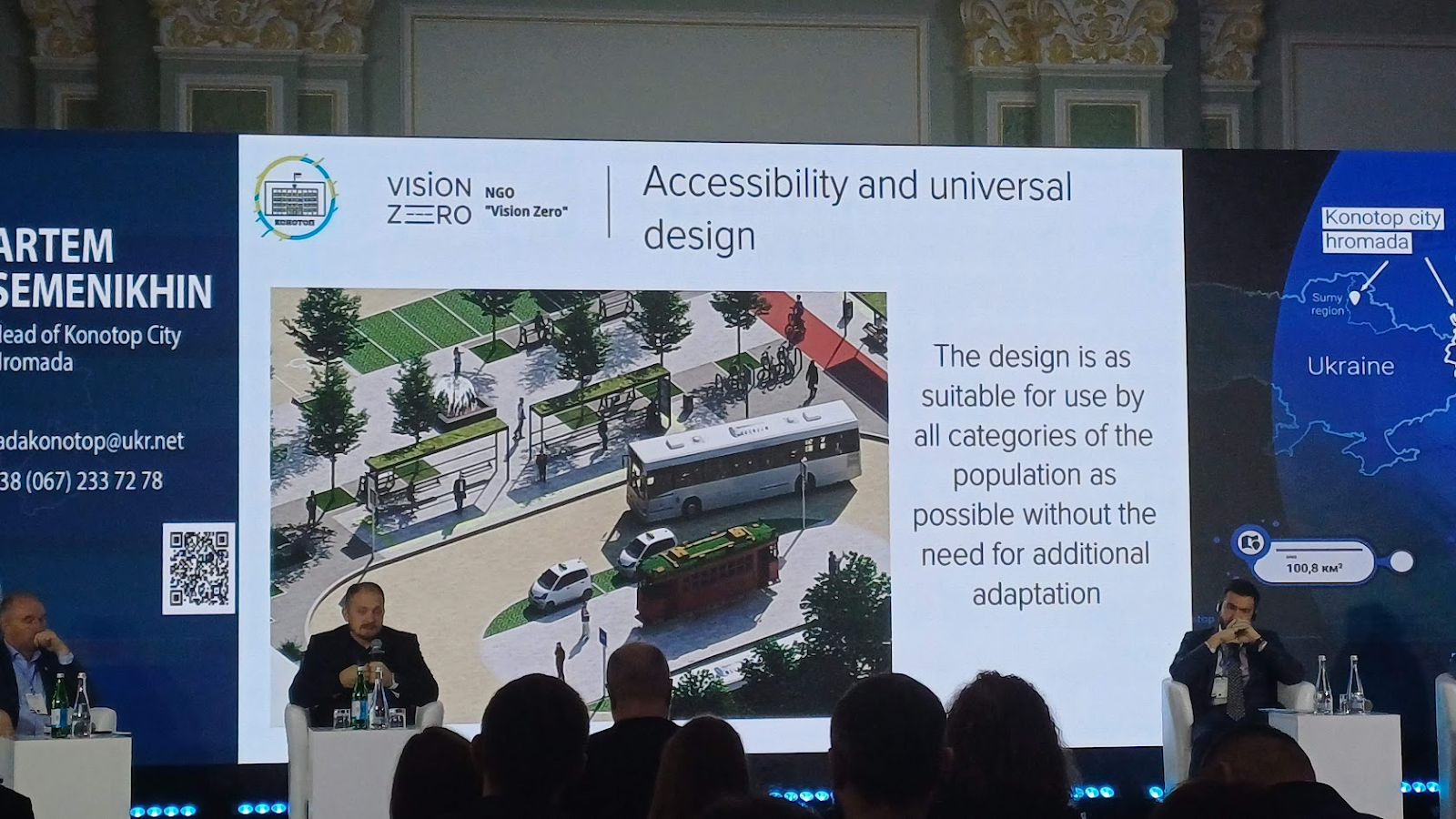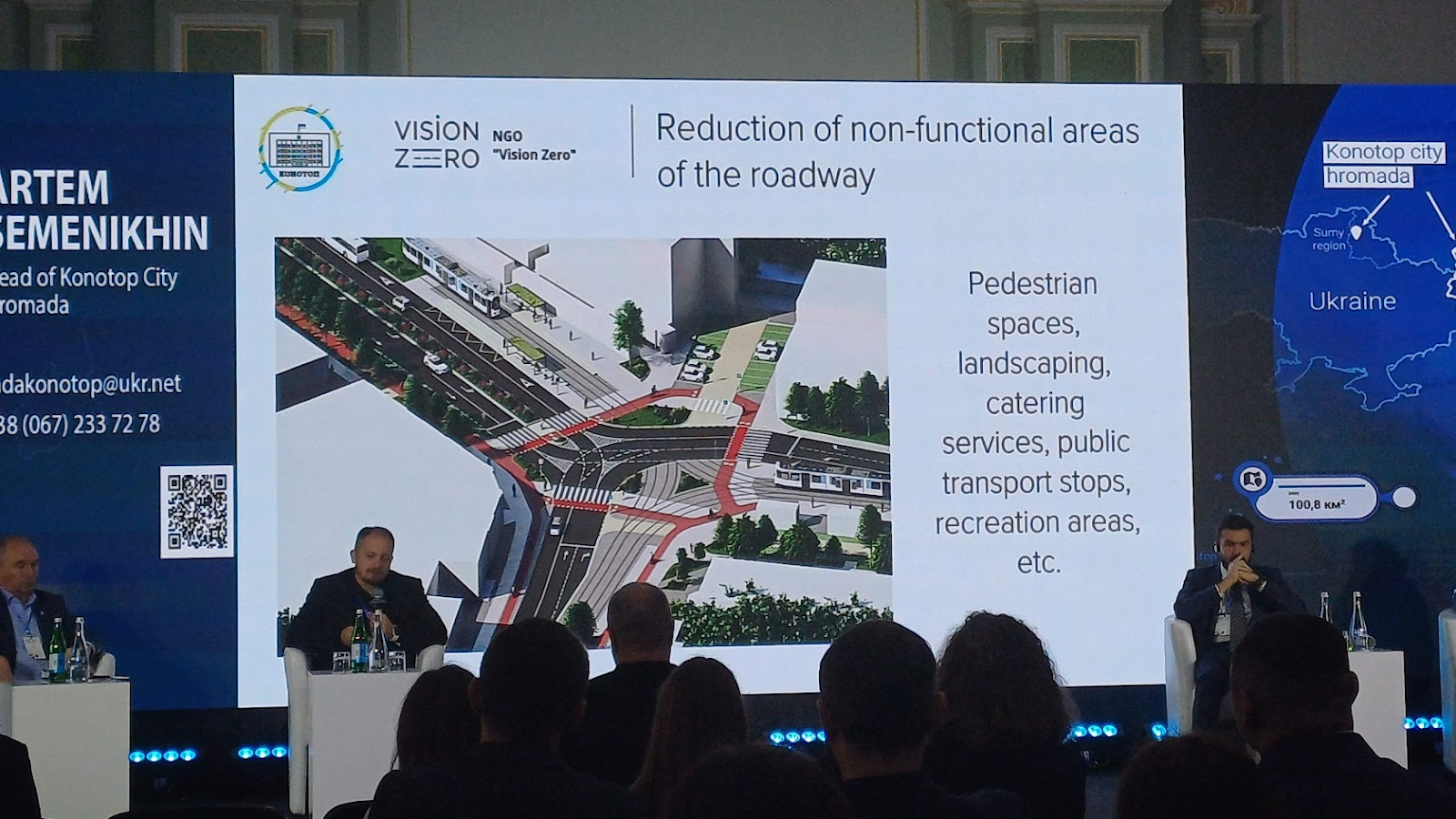 Одним із проєктів, представлених на конференції для міжнародних партнерів, була Концепція реконструкції Двірцевої (Привокзальної) площі в місті Конотоп, розроблена ГО "Vision Zero", яку особисто презентував міський голова Конотопа, Артем Семеніхін.